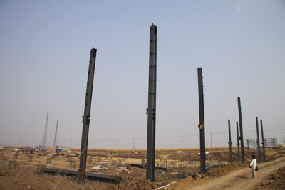 在項目部的周密組織下,全體施工人員頂烈日、戰風(fēng)雨,迎著(zhù)朝陽(yáng)進(jìn)現場(chǎng),送走夕陽(yáng)挑燈干,以超常規的打法搶進(jìn)度,全力加快光伏產(chǎn)業(yè)園區建設步伐,截止發(fā)稿,基礎施工已經(jīng)全部完成,現已經(jīng)開(kāi)始鋼構立柱吊裝、鋼屋架安裝階段,工程形象一天一個(gè)樣。據項目經(jīng)理介紹,在整個(gè)園區開(kāi)工的工程中,咱們的進(jìn)度是最快的。項目部有信心通過(guò)“百日攻堅會(huì )戰”,全力加快施工速度,當好園區全線(xiàn)的領(lǐng)跑者,為公司樹(shù)立企業(yè)良好形象,向市政府遞交滿(mǎn)意的答卷。