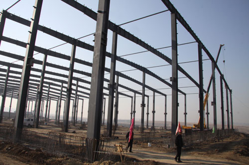 經(jīng)過(guò)60天的緊張施工,光伏園區8號標準化廠(chǎng)房,鋼結構安裝實(shí)現主體封閉。2011年11月8日